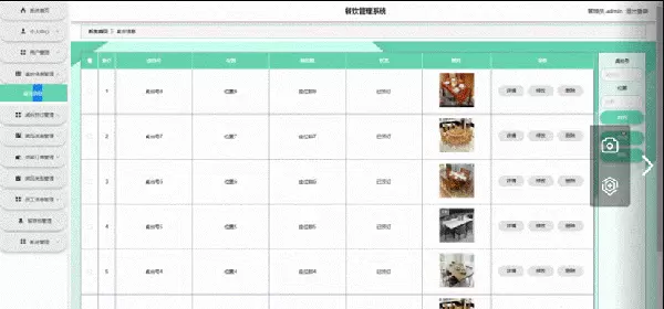 管理员点击“桌台信息管理”后,可在页面中根据桌台号或位置进行信息查询,同时支持添加新的桌台或移除已有条目。对于现有桌台信息,可进行详情查看、修改或删除操作。桌台信息管理界面如图5-8所示:
