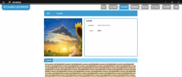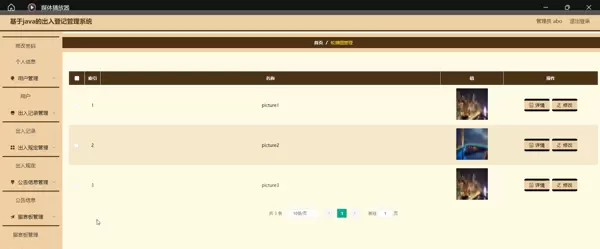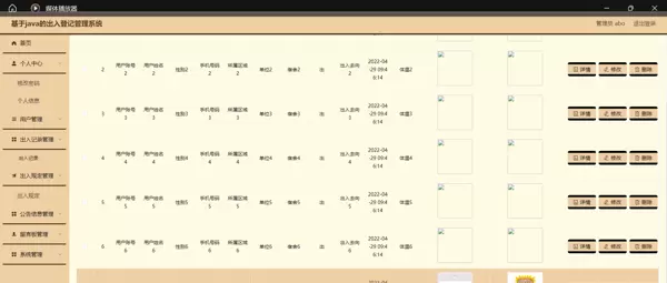 系统围绕“用户、出入记录、出入规定、公告信息”四个核心模块展开建设: