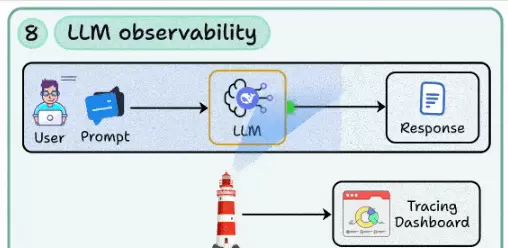 核心操作包括:追踪令牌消耗情况、识别响应延迟的高峰期、监测提示词是否发生偏移(即逐渐偏离初始设计目标),并利用这些监控数据持续进行模型优化与迭代。