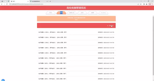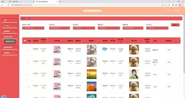 高校竞赛管理系统基于不同使用角色划分为两大主体:管理员与普通用户。其中,管理员拥有全面的操作权限,包括但不限于字典管理、论坛管理、竞赛公告发布、获奖信息维护、教师账户管理、评审专家管理、评审任务分配、打分记录管理、赛事创建与配置、参赛作品提交审核、报名信息管理、用户权限控制以及系统管理员自身的管理功能。普通用户则可完成报名参赛、查看赛事动态、提交作品等基本操作。 系统后端采用Java语言开发,基于Spring Boot框架构建,具备良好的扩展性与稳定性;数据存储选用MySQL关系型数据库,保障信息的一致性与安全性。整个系统实现了竞赛全生命周期的信息化管理,不仅提升了处理效率,优化了业务流程,同时也增强了数据保护能力,是一款可靠、安全、易于维护的应用程序。