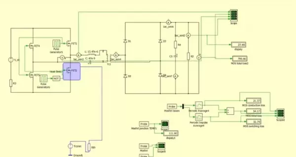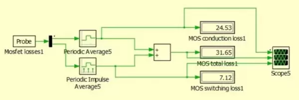 借助精细化建模方法,仿真系统可分别提取功率开关管的导通损耗、开关损耗以及反向恢复损耗,并进行累加统计,获得总损耗数据,为后续热分析提供输入依据。