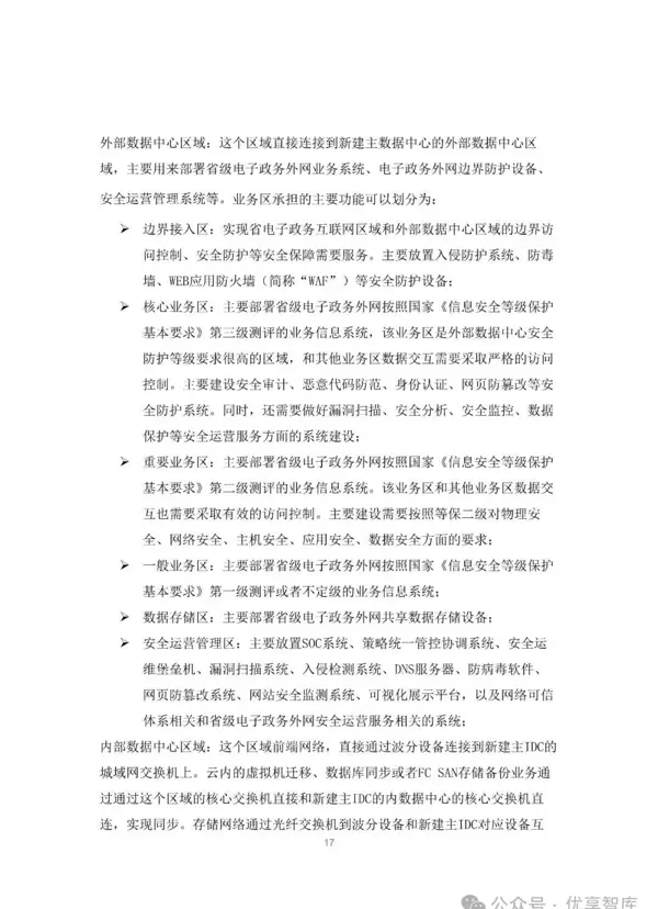 - 构建集“可视、可管、可控、可信、可创”于一体的综合安全防护体系,确保关键数据不出省域、核心业务持续在线、网络攻击有效抵御、安全事件全程可追溯、合规管理闭环运作。