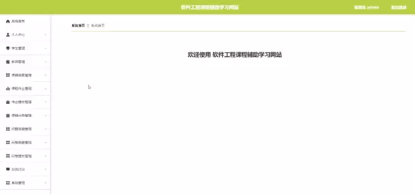 管理员登录后进入主操作界面,主要负责多项核心管理功能,包括但不限于:系统首页配置、个人中心维护、学生与教师信息管理、课程与作业管理、问题答疑、问卷管理、交流讨论监管以及系统参数设置等。管理员主界面如图5-7所示。