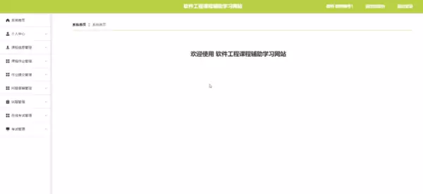 教师登录系统后,可使用包括系统首页、个人中心、课程信息管理、课程作业管理、作业提交管理、问题答疑管理、试题管理、在线考试管理及考试管理等多项功能。教师主界面如图5-14所示: