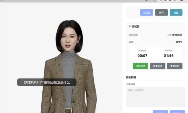 在招聘领域,AI面试官的应用正逐步普及。数据显示,截至2024年底,超过半数的头部企业已在初筛环节部署AI面试系统。尽管如此,当前多数方案仍依赖于纯文本或语音交互,面临拟真性不足与实施成本高的双重挑战。