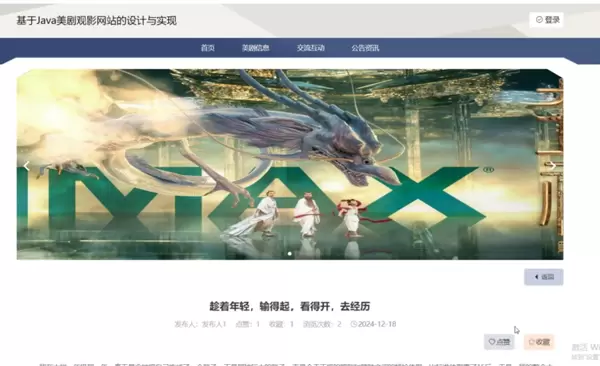 系统后端采用Java语言结合Spring Boot框架进行构建,充分发挥其高效、简洁的特性,提升了服务响应速度与开发效率。前端界面则运用HTML、CSS和JavaScript等主流Web技术打造,确保用户在使用过程中获得良好的交互体验。数据存储方面,选用MySQL数据库对美剧资源信息、用户账户资料、观影历史记录及论坛互动内容等关键数据进行统一管理与维护。