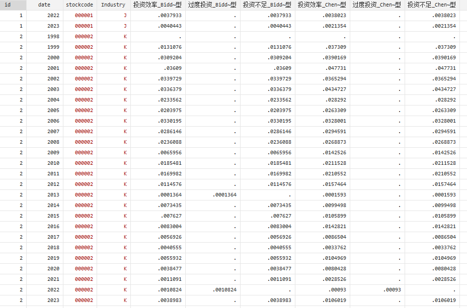 [经管数据集] 上市企业投资效率的Chen模型与Biddle模型数据带stata计算过程代码1999-2023年最优版 |