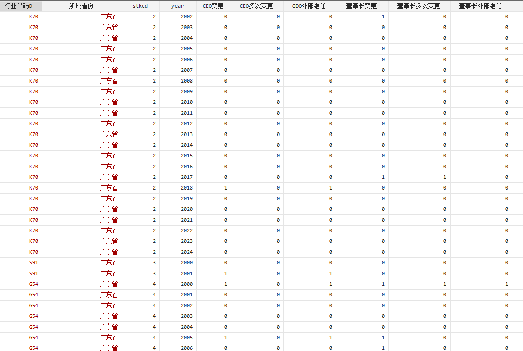 【2025年整理】A股上市公司高管变更相关数据资料数据主题A股上市公司高管变更(CEO变更、董事长变更)数据,时间跨度为2000 - 2024年,附送stata代码。