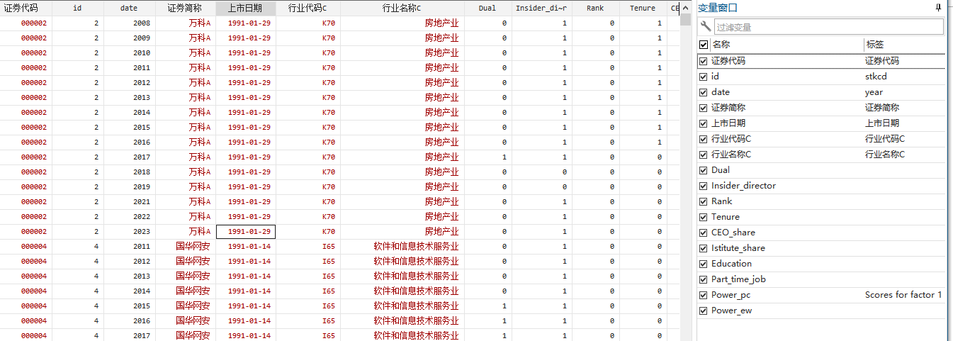 | 组织权力 | Insider - director | 是否是公司内部董事,是取1,否取0 |