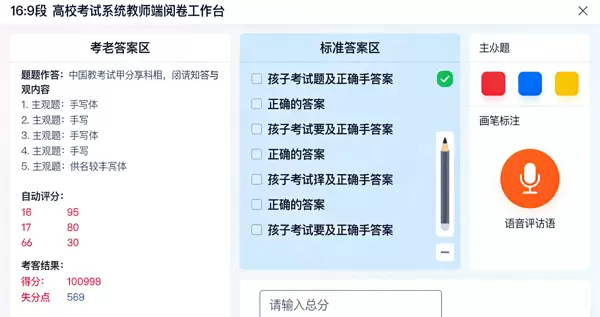 - 支持主观题在线批改,提供画笔标注与语音评语功能;