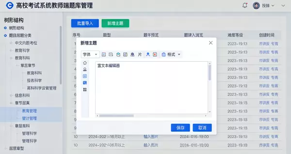 交互设计:配备富文本编辑器,支持公式插入与图片上传功能。