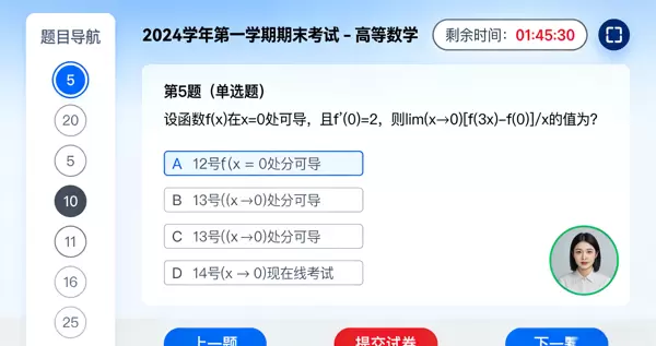 - 提供题目分页导航与答题标记功能,便于考生回顾;