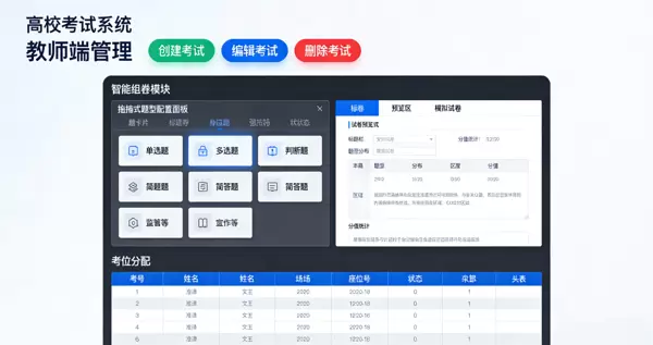 在高等教育信息化转型不断推进的背景下,传统考试模式暴露出组织效率低下、资源调度困难以及公平性保障不足等问题。为应对高校考试场景中的实际挑战,本系统以数字化手段重构考试全流程,着力解决人工排考易冲突、纸质试卷成本高昂、阅卷周期冗长及成绩统计错误频发等核心痛点,同时满足常态化疫情防控下的无接触考试需求。
