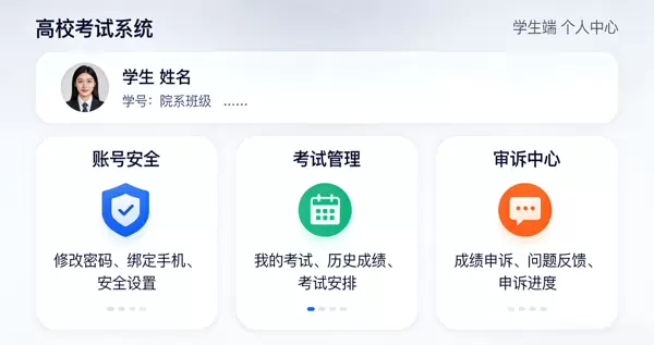 - 提供申诉通道,用于提交成绩复核申请或举报疑似作弊行为。