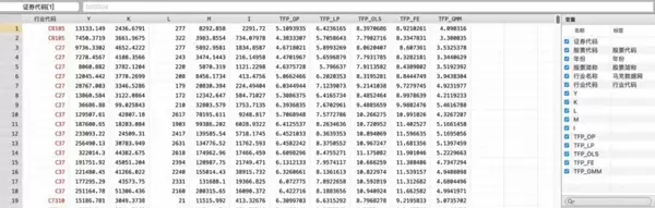 在测算方法上,参考鲁晓东、连玉君(2012)等学者的研究范式,采用五种主流估算模型进行全要素生产率计算,具体包括:OLS回归法、固定效应模型(FE)、Levinsohn-Petrin方法(LP)、Olley-Pakes方法(OP)以及GMM动态面板估计法。多种方法并行处理有助于提升结果的稳健性与可比性。