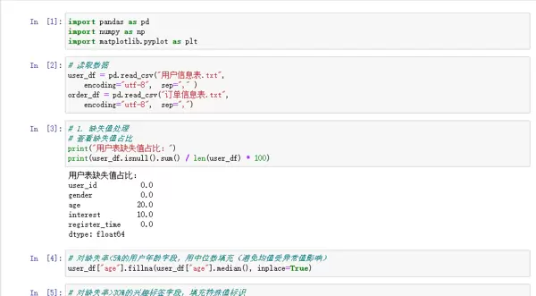 本部分基于 Python 中的 Pandas 与 NumPy 库,使用某电商平台 2025 年第三季度的用户行为数据(包含 user_info.csv 和 order_info.csv 两个文件),逐步演示完整的预处理流程。