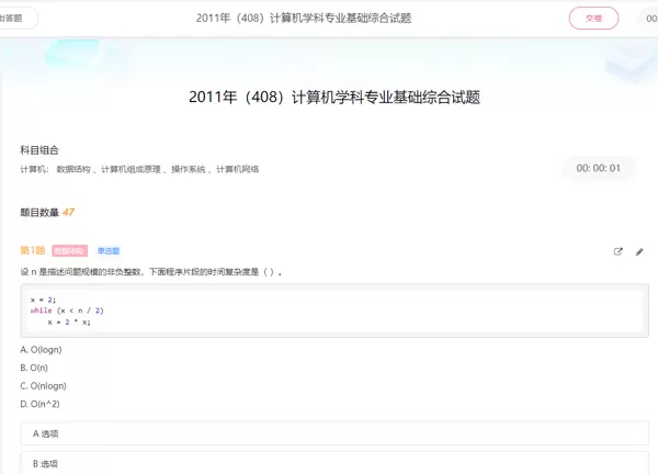 设?n?是描述问题规模的非负整数,以下程序片段的时间复杂度为( )。
