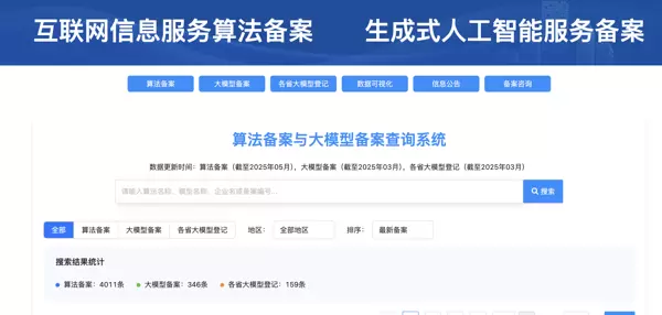 自2023年8月《暂行办法》实施以来,截至2025年3月,全国已有346家大模型通过备案;若计入2025年4月和5月部分省份陆续公布的名单,总数已突破400家。相较算法备案而言,大模型备案在审批数量上更少、周期更长,反映出其更高的准入门槛与更严格的审核标准。