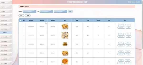 进入“餐品信息管理”模块后,管理员可通过输入餐品名称或价格进行检索,也可新增或删除餐品记录。同时支持对餐品详情进行查看、修改、评论查阅及删除操作。具体界面如图5-7所示: