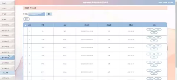 管理员点击“员工出勤管理”后,可按打卡类型筛选出勤记录,并对员工出勤情况进行详情查看、修改或删除操作。该功能对应的界面如图5-9所示: