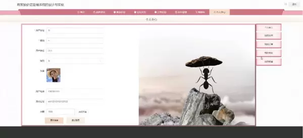 个人中心页面允许用户查看和修改个人信息,同时支持对“我的收藏”、“我的地址”、“我的发布”以及“我的订单”等功能模块的操作。界面布局如图5-3所示:
