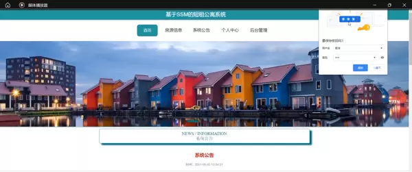 系统前端界面简洁直观,适配高校学生租房使用场景,包含登录注册、房源浏览、条件筛选、在线咨询、预约看房、合同签署等功能入口。