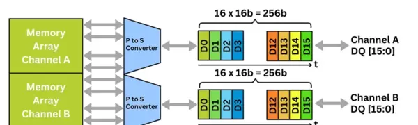 HBM堆栈提供16个独立的64位通道,支持对内存体(bank)进行细粒度访问。在HBM3中,并发能力进一步增强:每个64位通道被划分为两个32位的“伪通道”(pseudo-channel),从而实现命令流与数据流的并行处理。命令总线负责协调各类操作,而数据则通过双倍数据速率(DDR)信令在数据总线上进行传输。