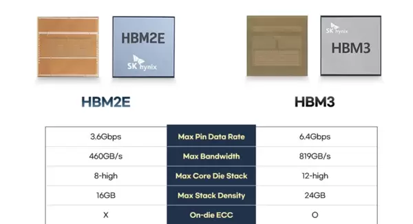 - HBM2E:速率增至3.2 Gb/s,支持12–16层堆叠,单堆栈带宽可达410 GB/s,容量最高达32 GB。