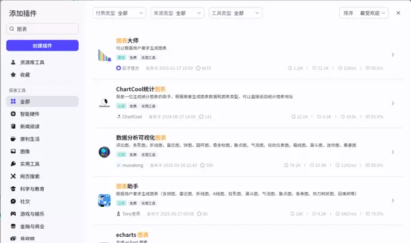在利用 coze 构建包含图表绘制功能的流程时,存在多种可用于生成图表的插件。为了评估各工具的实际表现,本文对当前可用的绘图插件进行了全面测试与对比。
