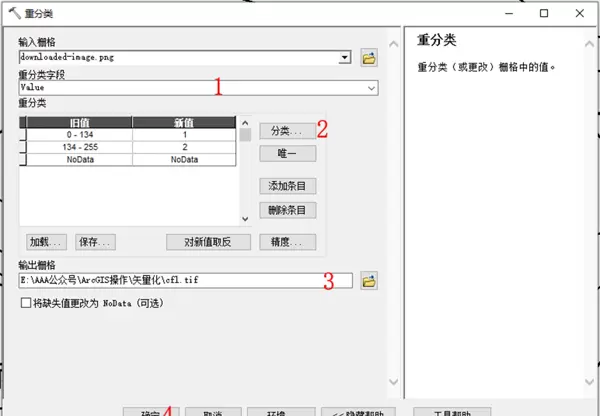 1.2 可通过搜索功能查找“重分类”工具,或依次进入系统工具 → 空间分析 → 重分类 → 重分类。参数设置参考下图所示: