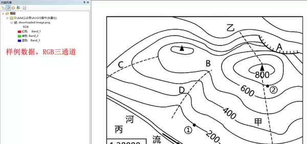 1.1 以从网络获取的样例图像为例,初始图像为 RGB 三通道格式,不适用于直接矢量化,需先执行重分类操作。