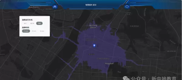 结合用户的实时位置,在设定选项中选择不同时间范围(如15分钟、20分钟、30分钟)生成等时可达范围圈,辅助出行决策。