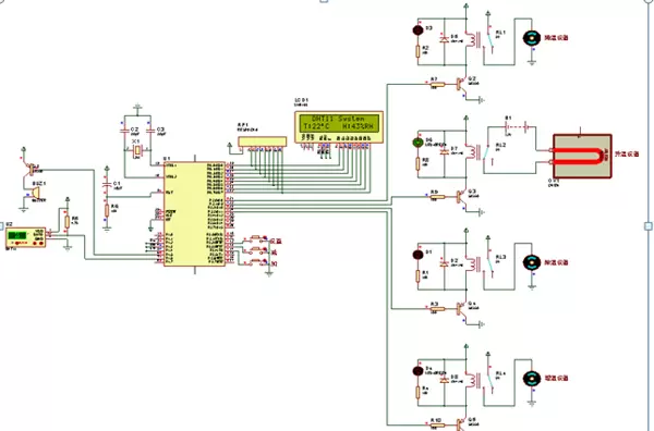 采集到的数据经处理后,实时显示在1602字符型液晶屏上。用户可通过按键操作设定温湿度的报警上下限值。当检测数值超过预设阈值时,系统将自动启动相应的调节电路,如通风或加热装置,同时触发声光报警模块以提示异常状态。