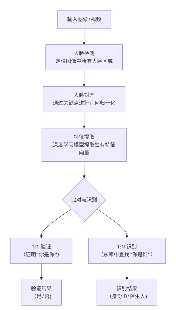 一套完整的人脸识别系统通常由多个关键环节构成,形成从图像输入到身份判定的技术闭环:
