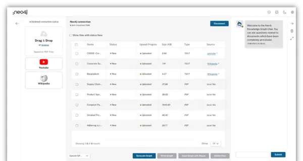 上传过程中,系统会调用LangChain的文档加载器和YouTube解析器,将所有内容解析并以“文档节点”的形式存入图数据库。