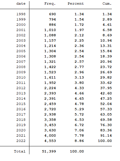 1998 - 2022年信息披露质量KV指数数据(含do文件)文件名称:KV指数2022.rar(4.45 MB)