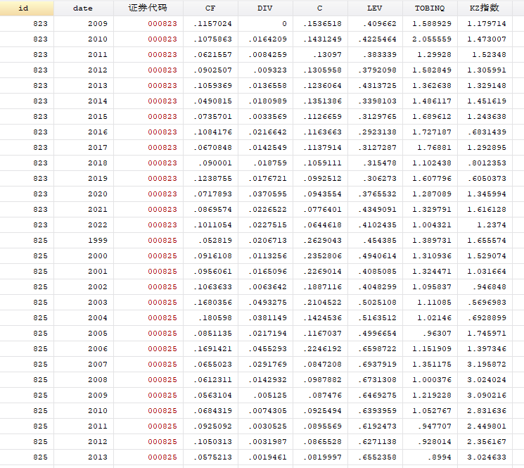 1998 - 2022最优版:KZ指数融资约束数据(上市公司)及stata计算代码