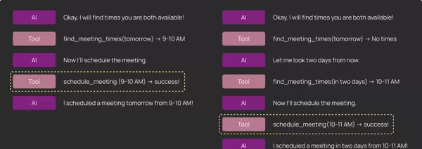 - 执行轨迹分析: 判断某个关键工具是否在整个执行过程中被调用过,而不严格限定其调用时机。例如,在日历调度任务中,可能需要多次尝试才能找到所有参与者都空闲的时间段。