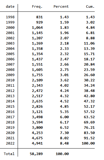 A股上市公司SA指数与Stata代码(1998-2022年最全版)