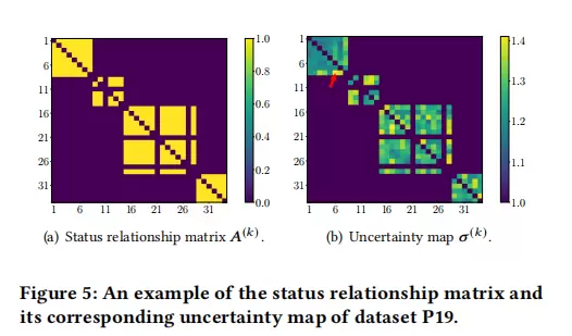 为进一步验证不确定性建模的效果,研究对状态关系矩阵 \(\boldsymbol{A}\) 与学习得到的不确定性图 \(\boldsymbol{\sigma}\) 进行了可视化分析。在一个具体案例中,对于LLM建议但实际关联较弱的两个变量(如DBP与EtCO2),模型自动赋予了很高的不确定性值。这一现象说明,Foresail具备识别并抑制LLM“幻觉”或噪声信息的能力,提升了整体推理的鲁棒性。