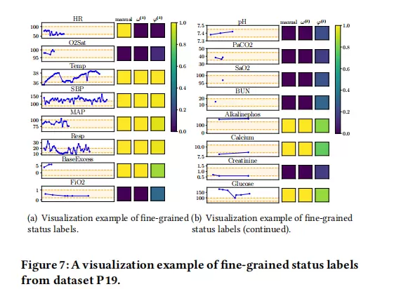 同时,论文还展示了传感器原始读数、LLM预测的细粒度状态标签以及模型输出的状态激活分数之间的对应关系。结果表明,LLM的零样本预测与基于医学常识的人工判断高度一致,而模型学习到的激活模式也与LLM标签保持良好对齐。这不仅证明了性能增益的来源,更揭示了Foresail生成过程的透明性和可解释性。