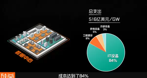 综合以上三项,IT类设备每GW的总支出约为431.5亿美元,构成了数据中心整体投入的最大比重。
