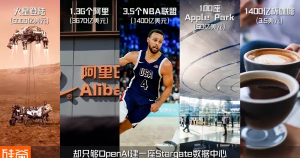 5000亿美元,这个数字足以支撑NASA完成人类首次登陆火星的壮举,可以收购1.36个阿里巴巴(估值3670亿美元),或3.5个NBA联盟(总价值约1400亿美元),能建造100座Apple Park(每座50亿美元),甚至能购买140 billion杯咖啡(按每杯3.5美元计算)。然而,这笔巨款却仅够OpenAI打造一座名为Stargate的AI数据中心。