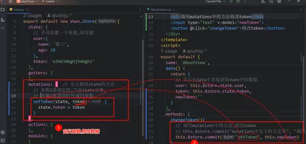 在代码中调用 this.$store.commit("setToken", this.newToken) 是 Vuex 唯一允许修改