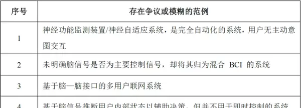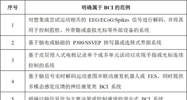 我们主张:只有符合BCI科学定义、具备前述七个必要组件和七个基本特征的系统,才能被认定为BCI。反之,则不应归入该范畴。为帮助辨析,表7至表9分别列举了明确属于BCI、明确不属于BCI,以及尚存争议或边界模糊的典型示例。