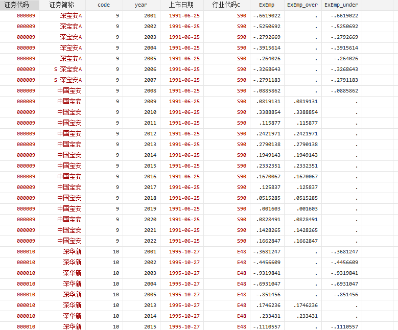 2022-2001年A股上市公司超额雇员数据及Stata计算代码(参考耿云江)