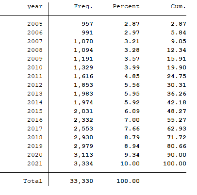 沪深A股超额现金持有ExtraCash模型的Stata代码计算结果(2005-2021)