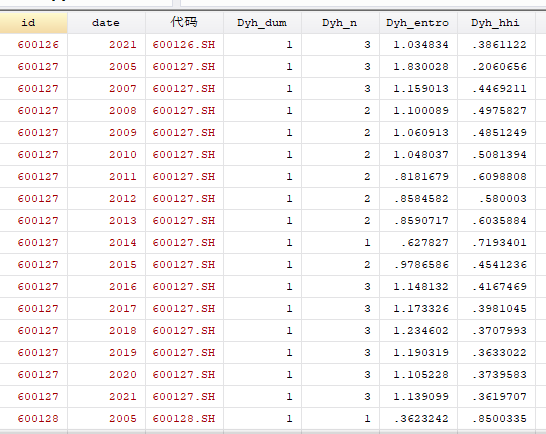 2001 - 2021送do代码相关涉及送do代码涵盖2001 - 2021年,涉及沪深A股的收入熵指数、经营单位数、赫芬达尔指数HHI、多元化经营哑变量相关内容。