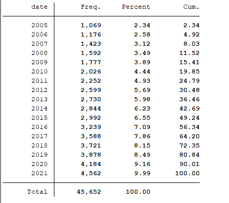 数据介绍原始数据源自wind_data,经stata计算得出多元化经营数据结果。