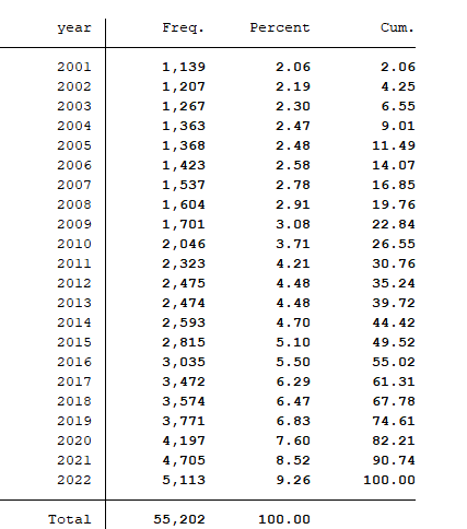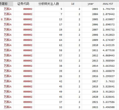 A股公司2001 - 2022年分析师关注度相关数据与文献分析师关注人数自然对数的计算方式为:ln(分析师关注人数 + 1)